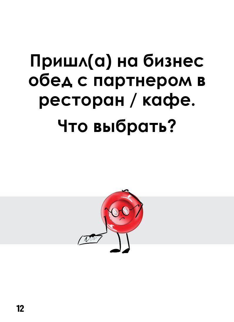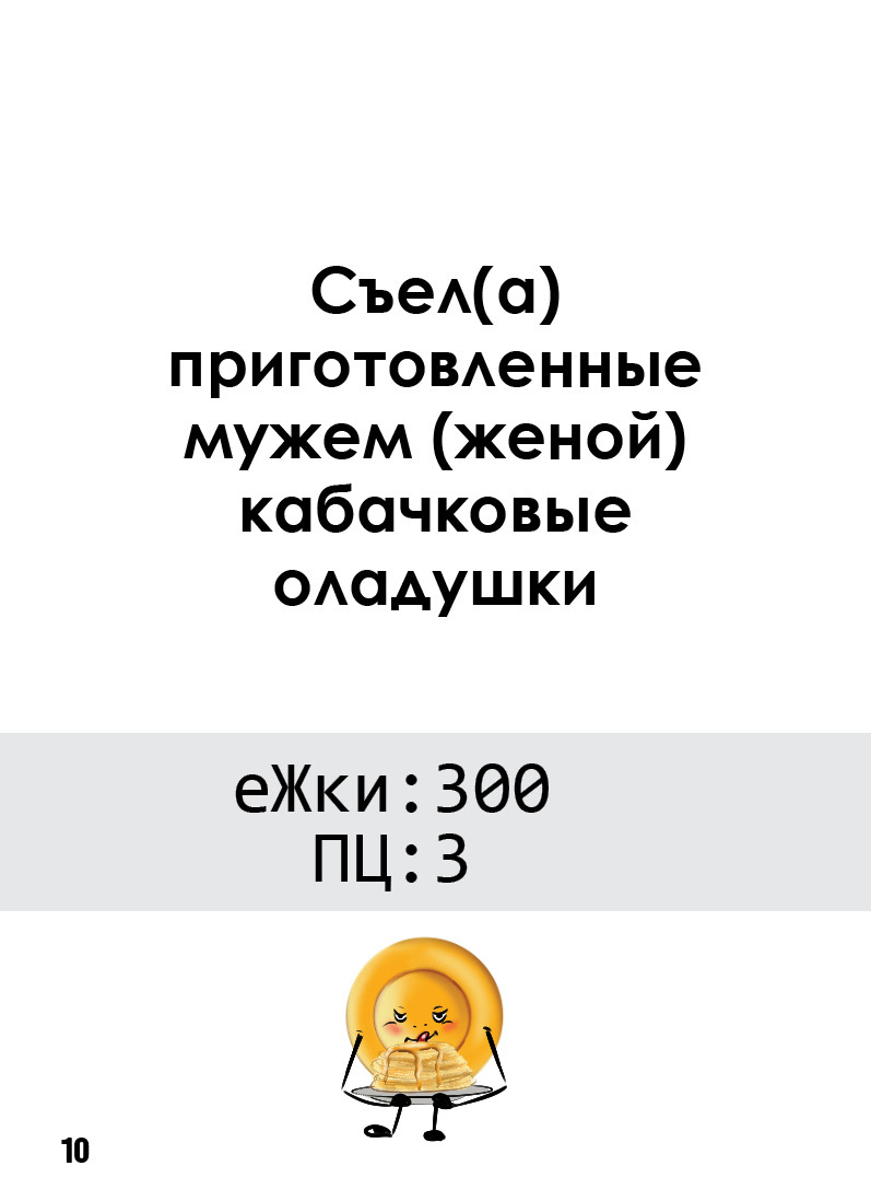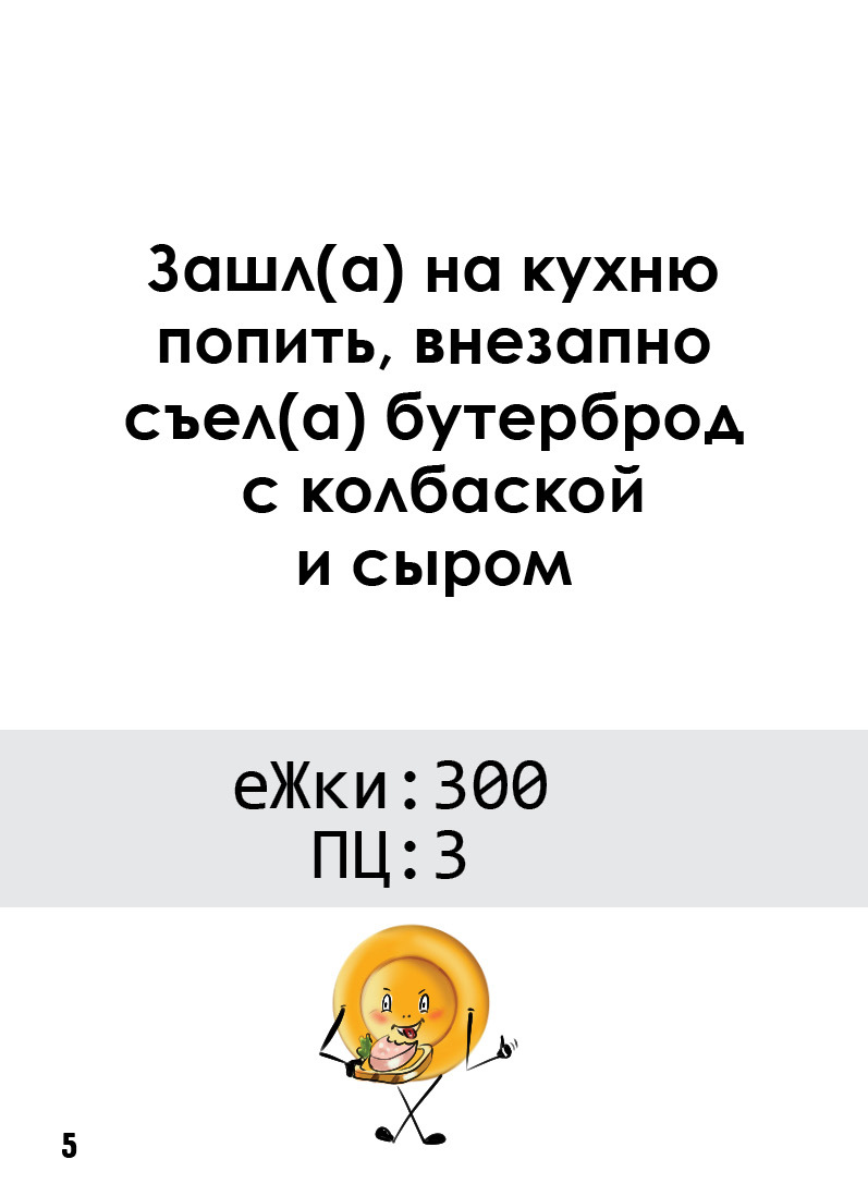 Игровые карточки создают реальные условия выбора, который совершает человек каждый день. Ведущий помогает увидеть риски несбалансированного рациона, дает профессиональные рекомендации, как исправить ошибки.
