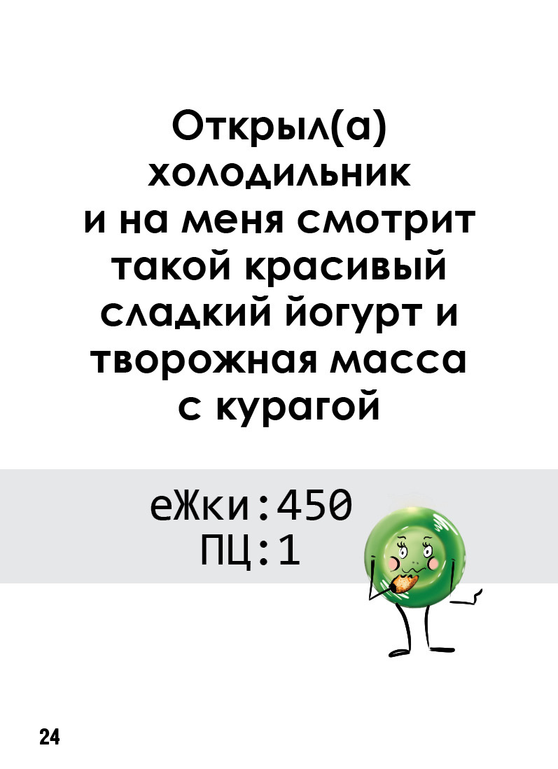 Карточки с иллюстрациями привычных продуктов питания используются для моделирования рациона дня, с учетом индивидуальных особенностей в питании. Игровые элементы создают увлекательный и легкий формат общения для людей, кто недоволен своим самочувствием, уровнем энергии и весом.